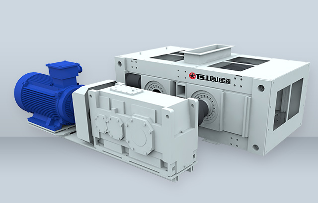 該機(jī)工作原理與輥壓機(jī)相近,采用了料層擠壓破碎的理念,其主體是由一對(duì)相互平行、水平安裝的圓柱形輥?zhàn)咏M成,分別由兩套彼此獨(dú)立的動(dòng)力裝置驅(qū)動(dòng)。當(dāng)這對(duì)輥?zhàn)幼鱿嘞蜻\(yùn)轉(zhuǎn)時(shí),進(jìn)入喂料口的物料受到輥?zhàn)拥臄D壓、沖擊、磨削而細(xì)碎,并隨自身重力被旋轉(zhuǎn)的輥?zhàn)铀Τ觯蛳滦堵洹?/p>