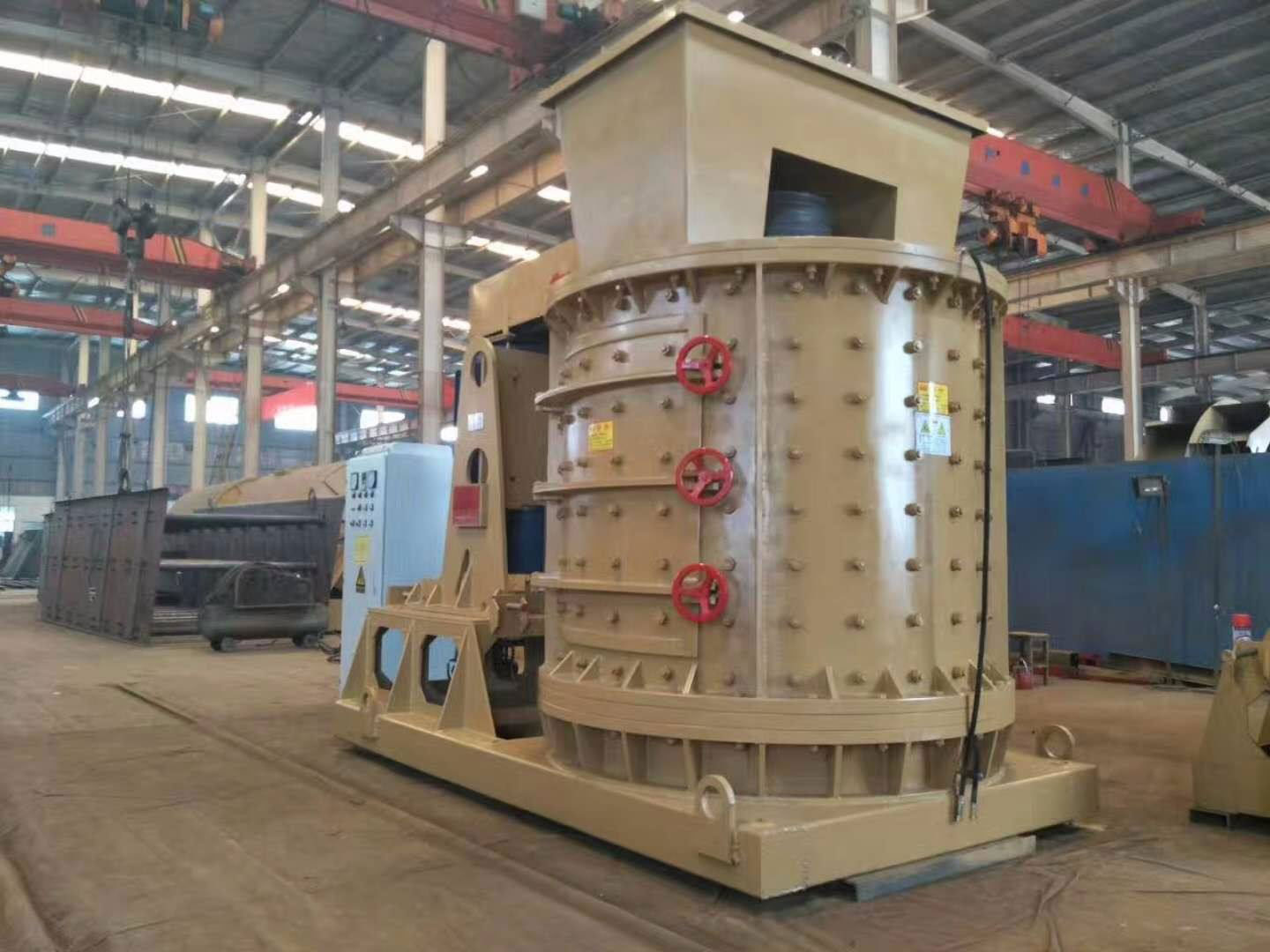立軸錘式制砂機(jī)既可以用作制砂機(jī)又可以當(dāng)成破碎機(jī)來(lái)使用。適用于邊長(zhǎng)不超過(guò)500mm 、抗壓強(qiáng)度不超過(guò) 350MPa 的各種粗、中、細(xì)物料(花崗巖、石灰石、混凝土等)的破碎制砂。