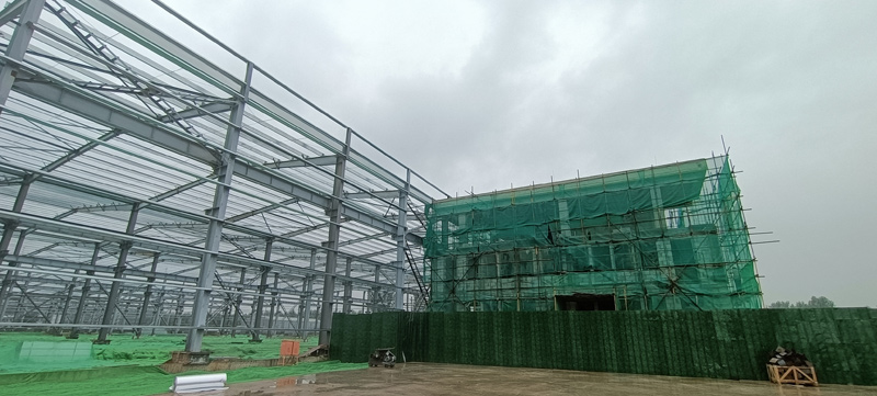 智能化生產(chǎn)廠房包括數(shù)字化展廳、備品備件庫(kù)等,建筑面積13800平米,目前所有的鋼結(jié)構(gòu)安裝已經(jīng)完成,正在進(jìn)行封裝工作。